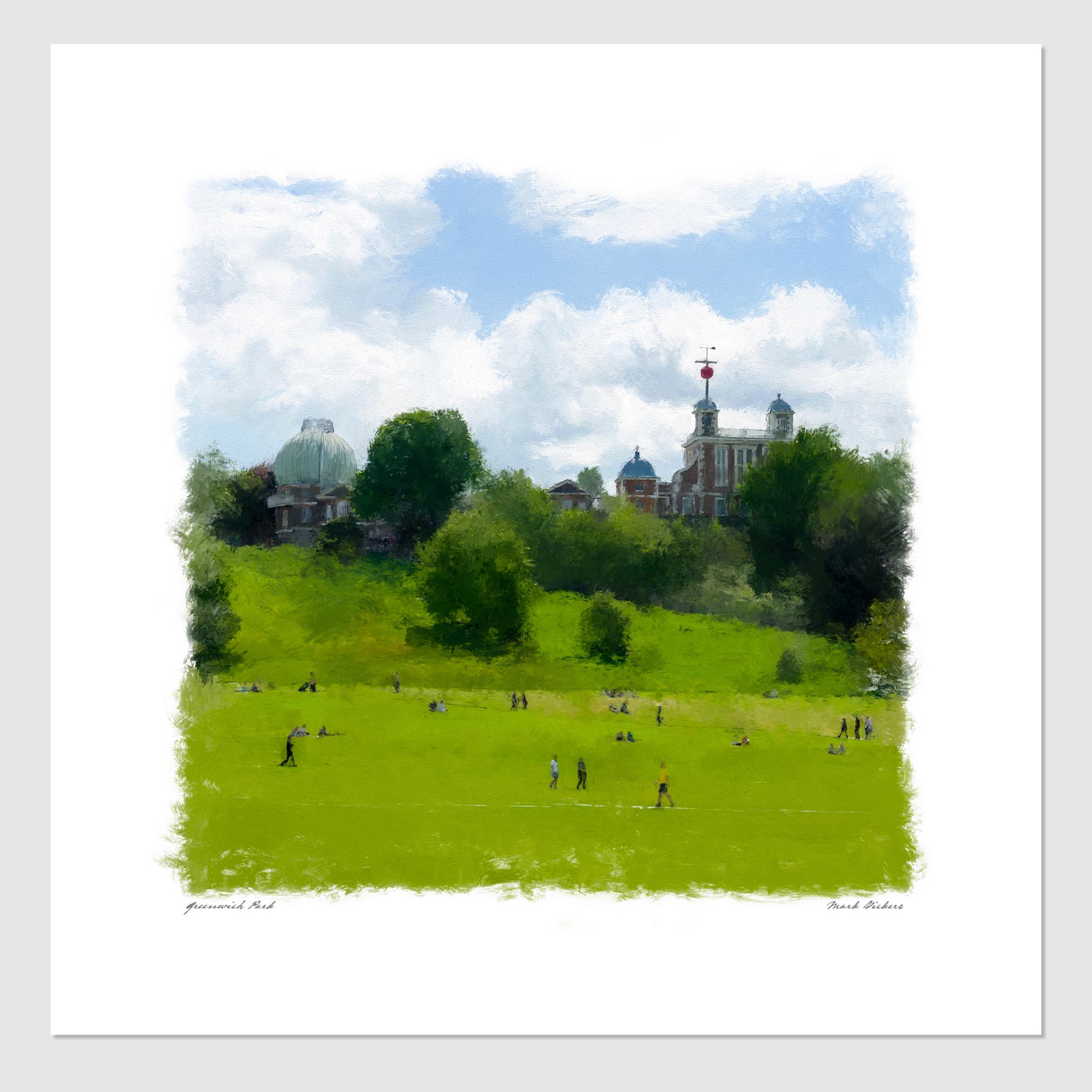 Mixed media painting of the Greenwich Royal Park, Greenwich, London.