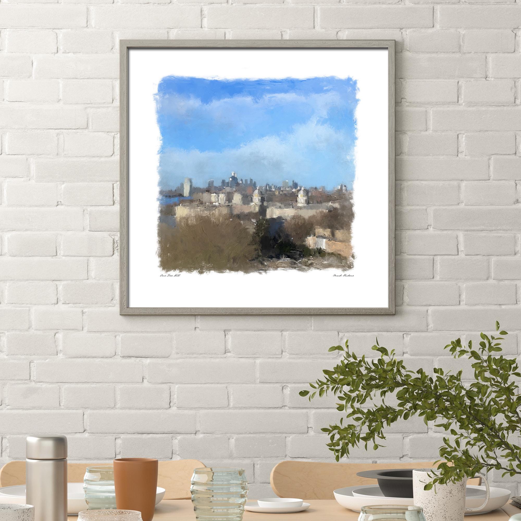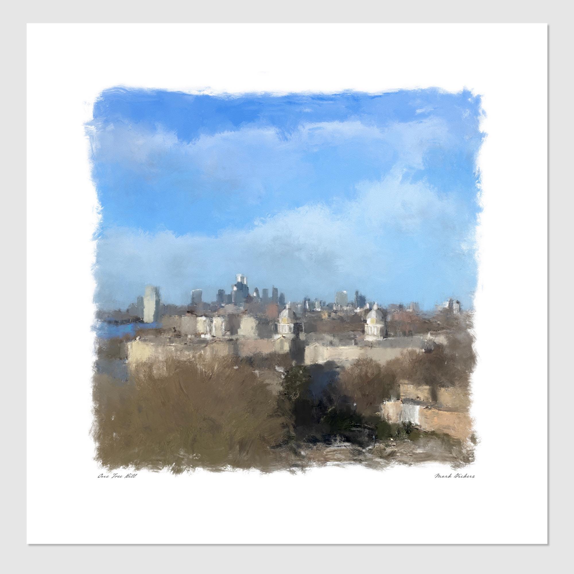Mixed media painting of the One Tree Hill, Greenwich Royal Park, London.