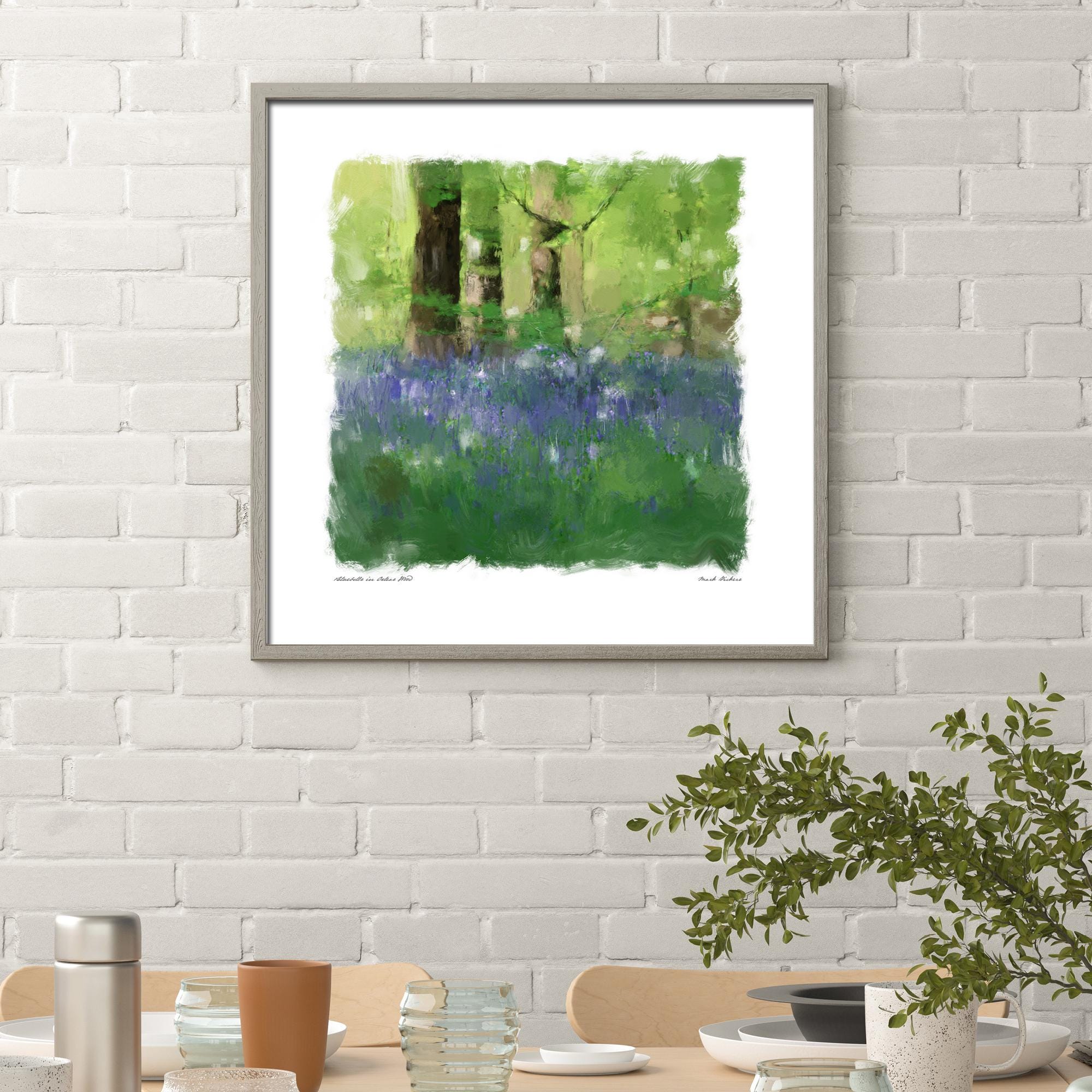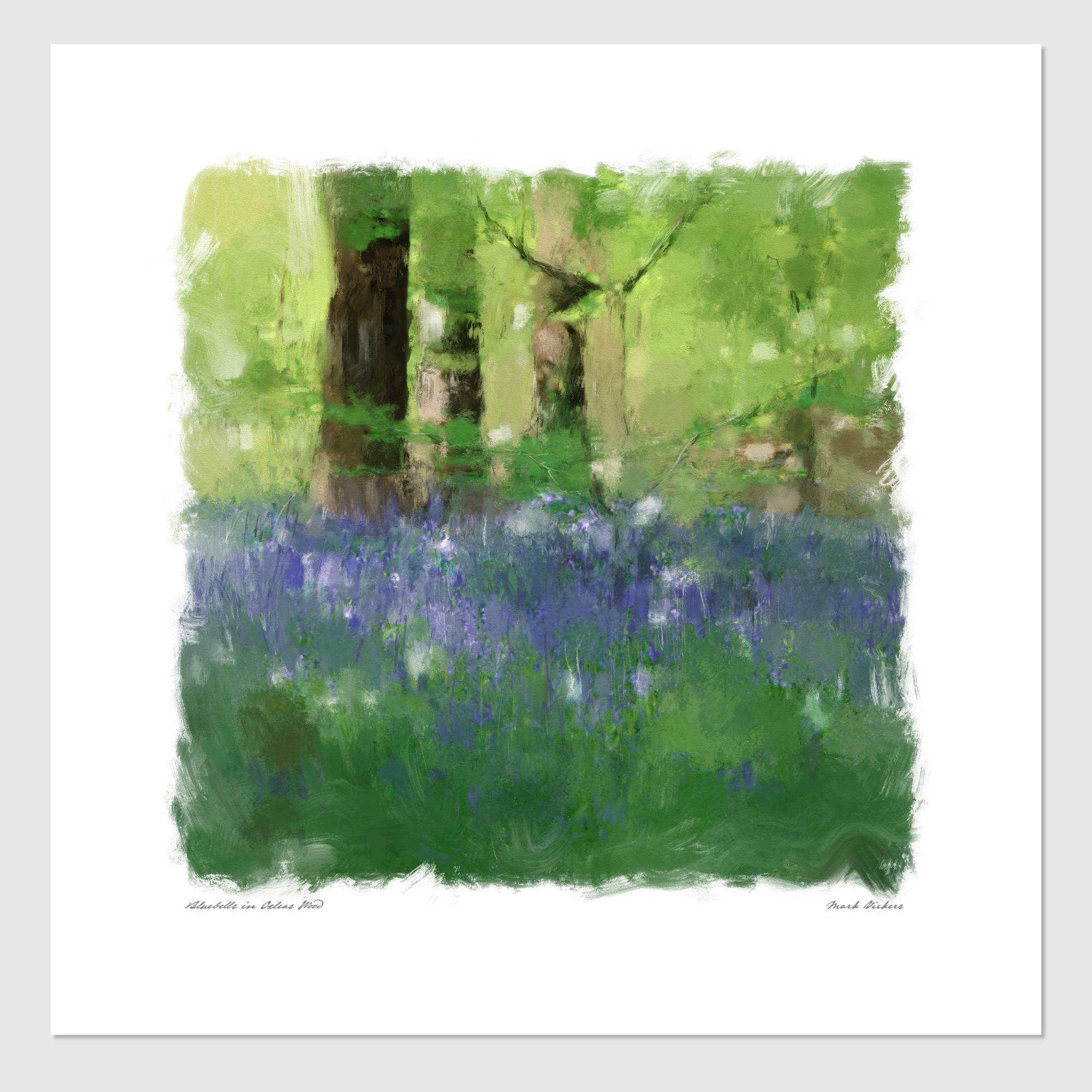 Mixed media painting of the Bluebells in Oxleas Wood, Eltham London.