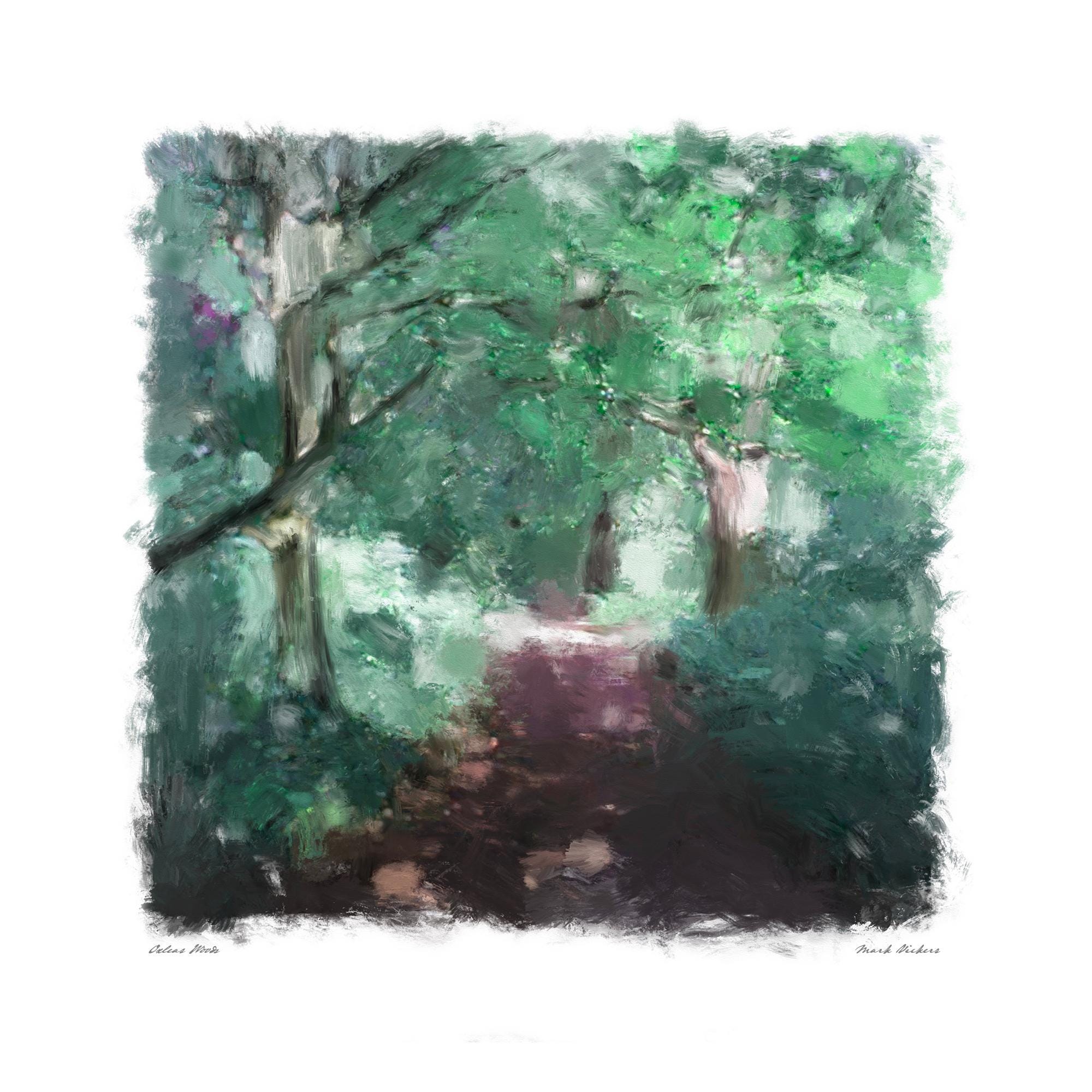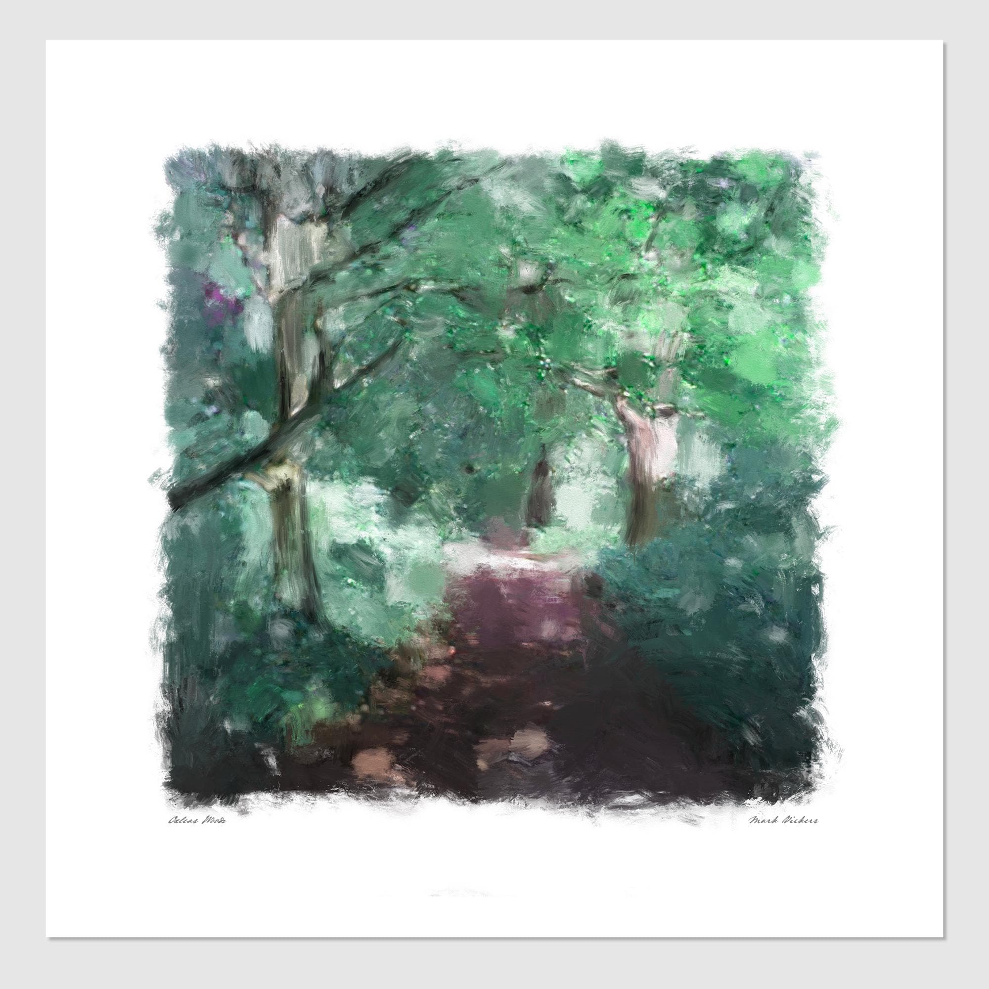Mixed media painting of Oxleas Woods, Eltham London.