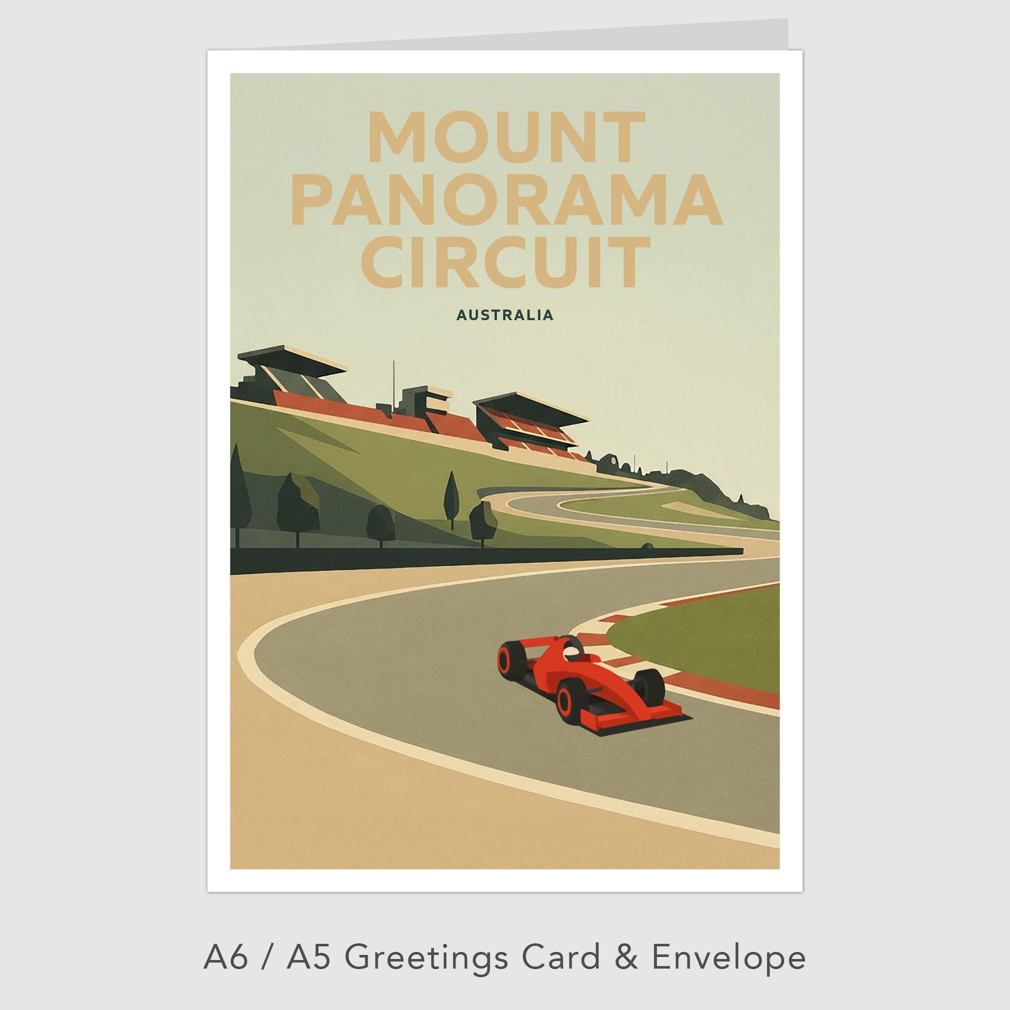 A poster-style illustration of the Mount Panorama Circuit, Australia.