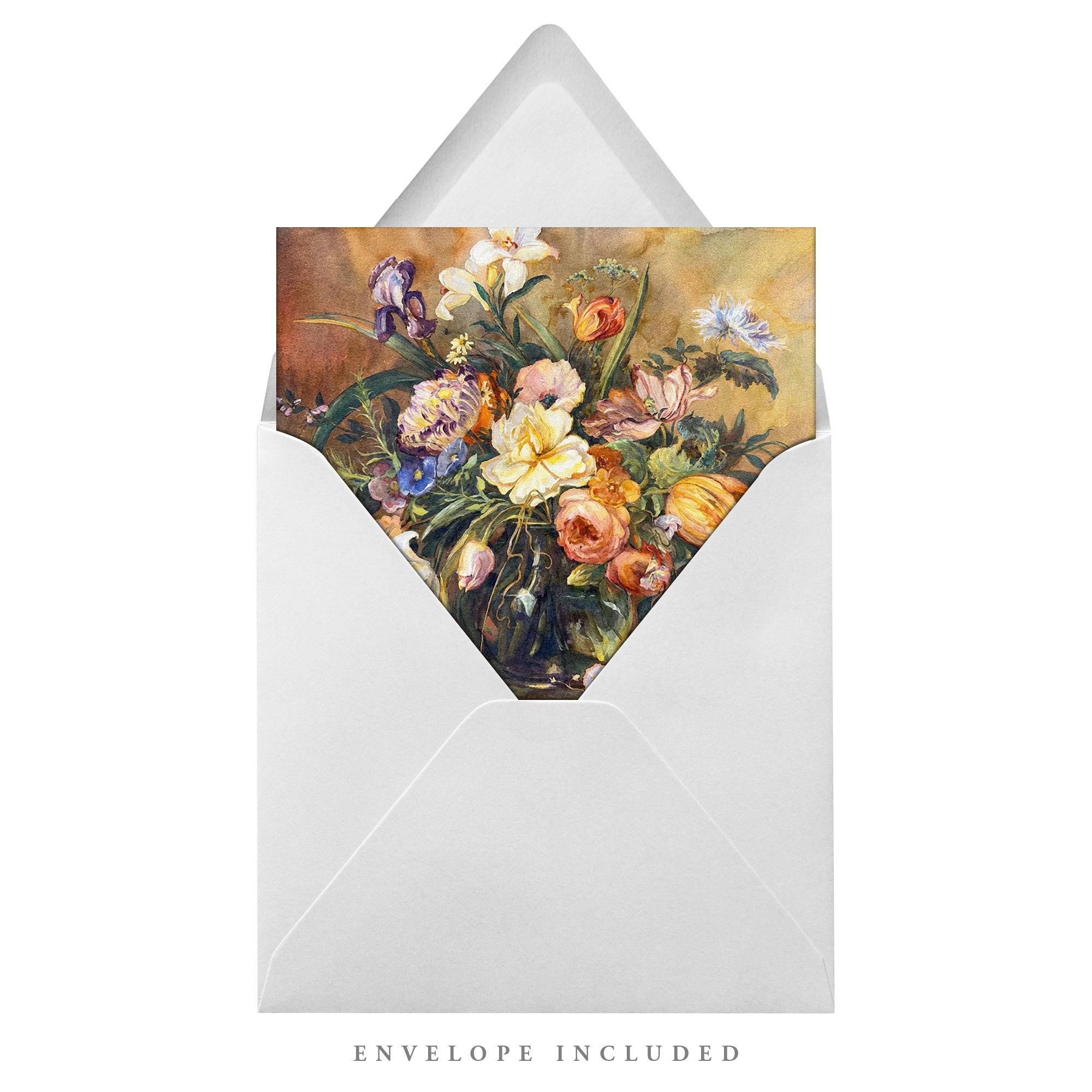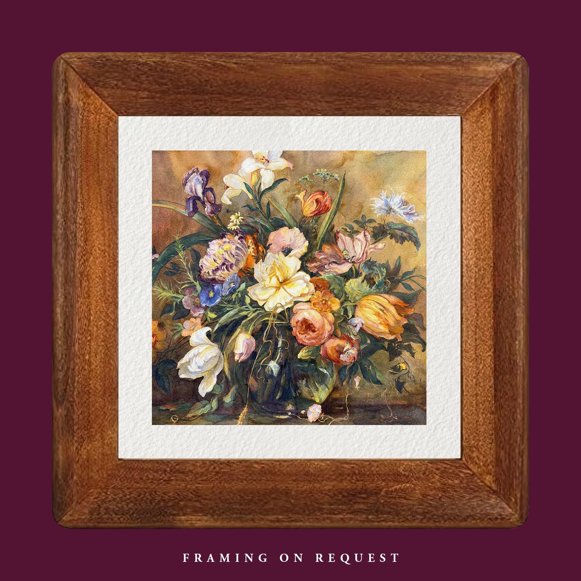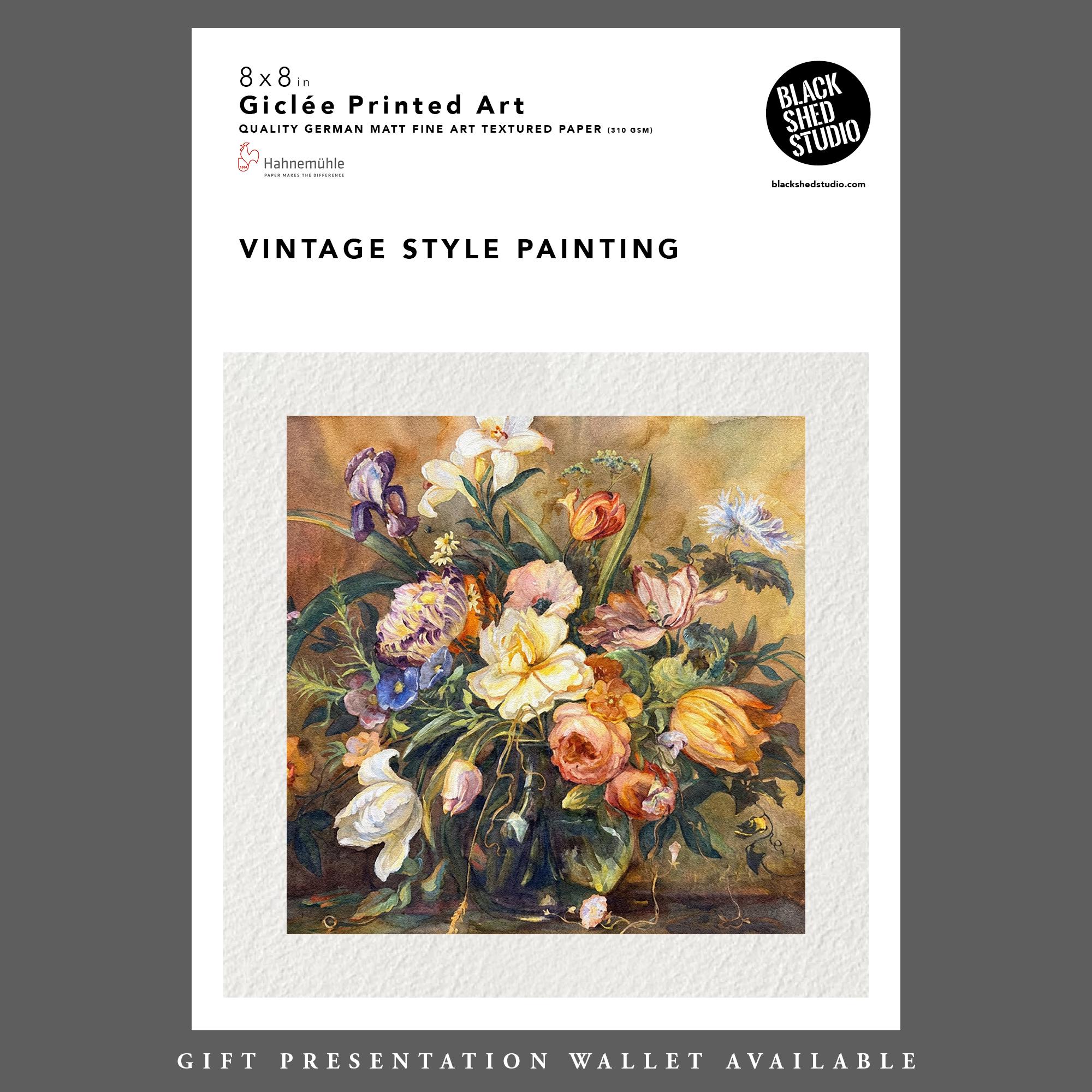 Vintage Flowers Watercolour Painting Fine Art Print & Greetings Card