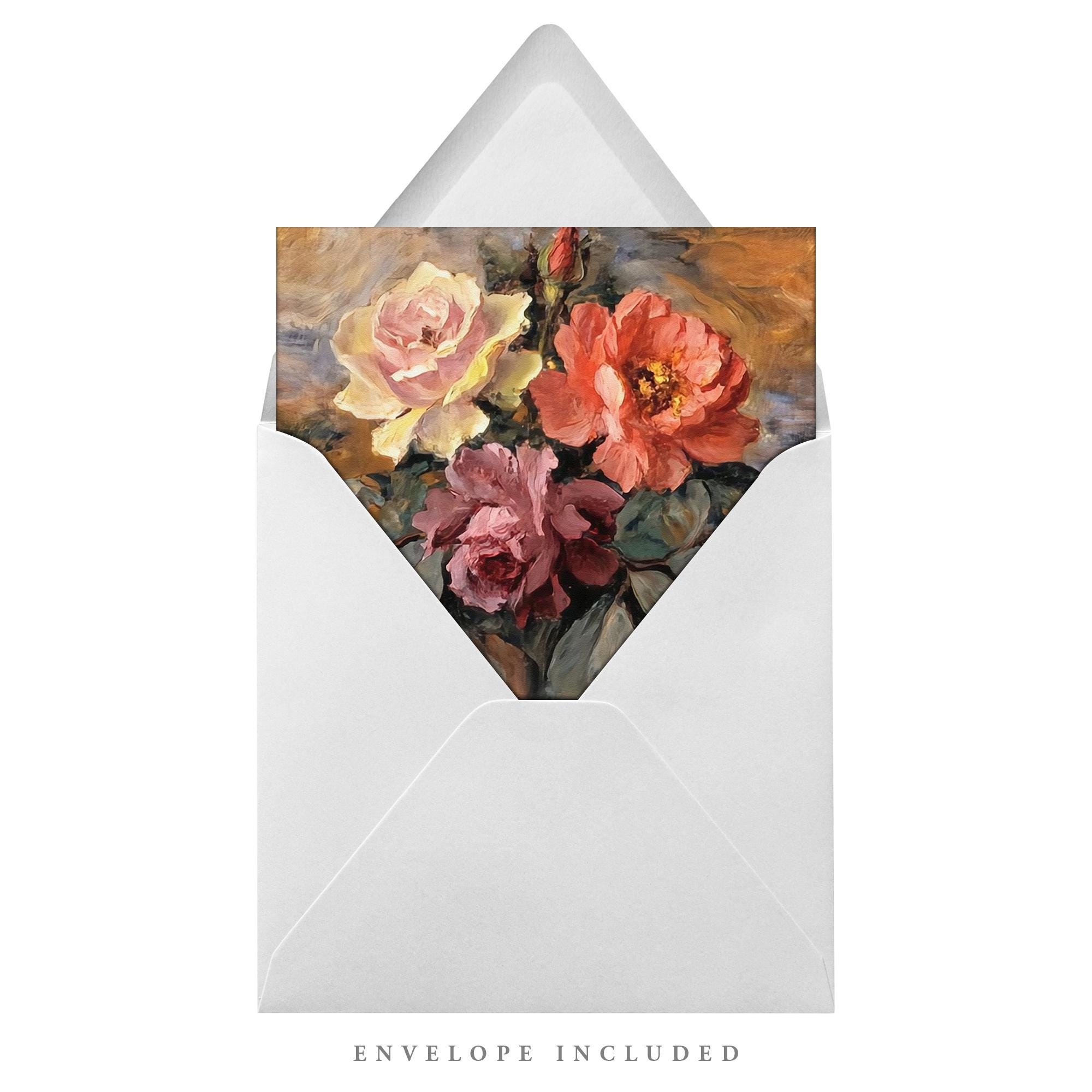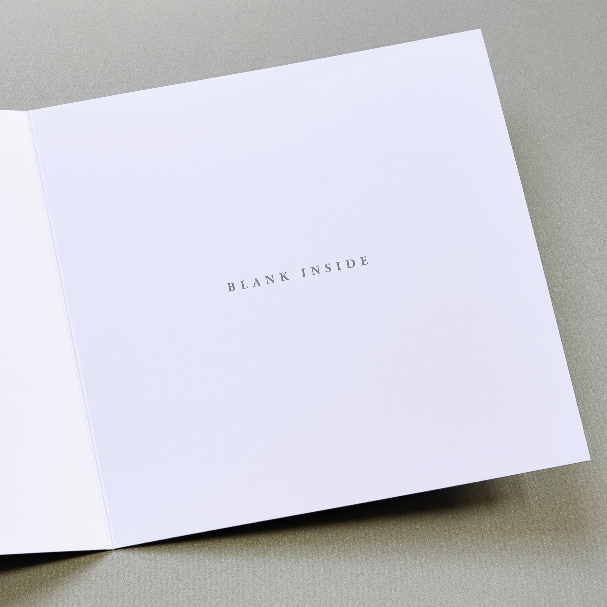 Greetings Card, blank inside: 300gsm, 148mm x 148mm Square, with a white envelope.