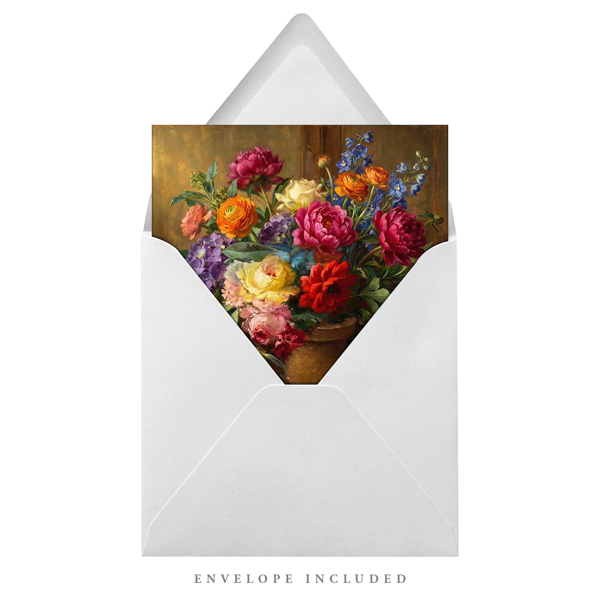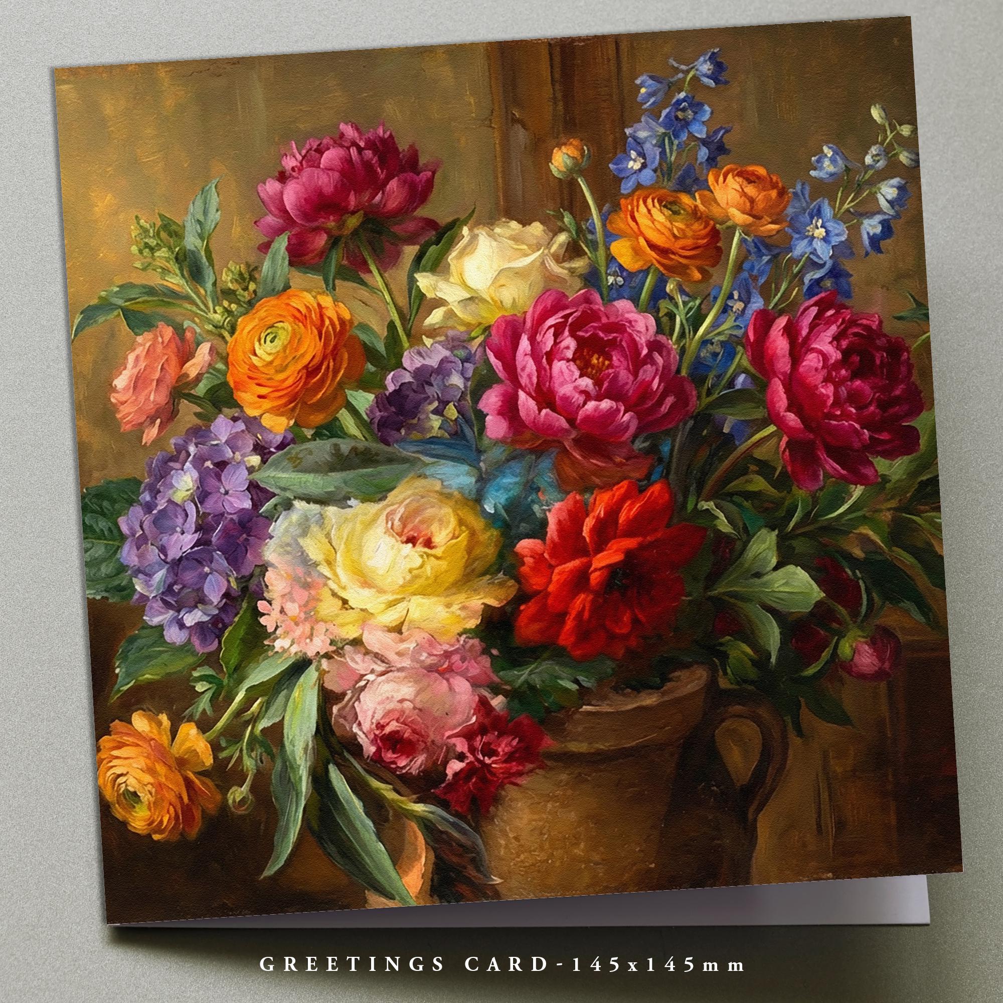 Greetings Card, blank inside: 300gsm, 148mm x 148mm Square, with a white envelope.