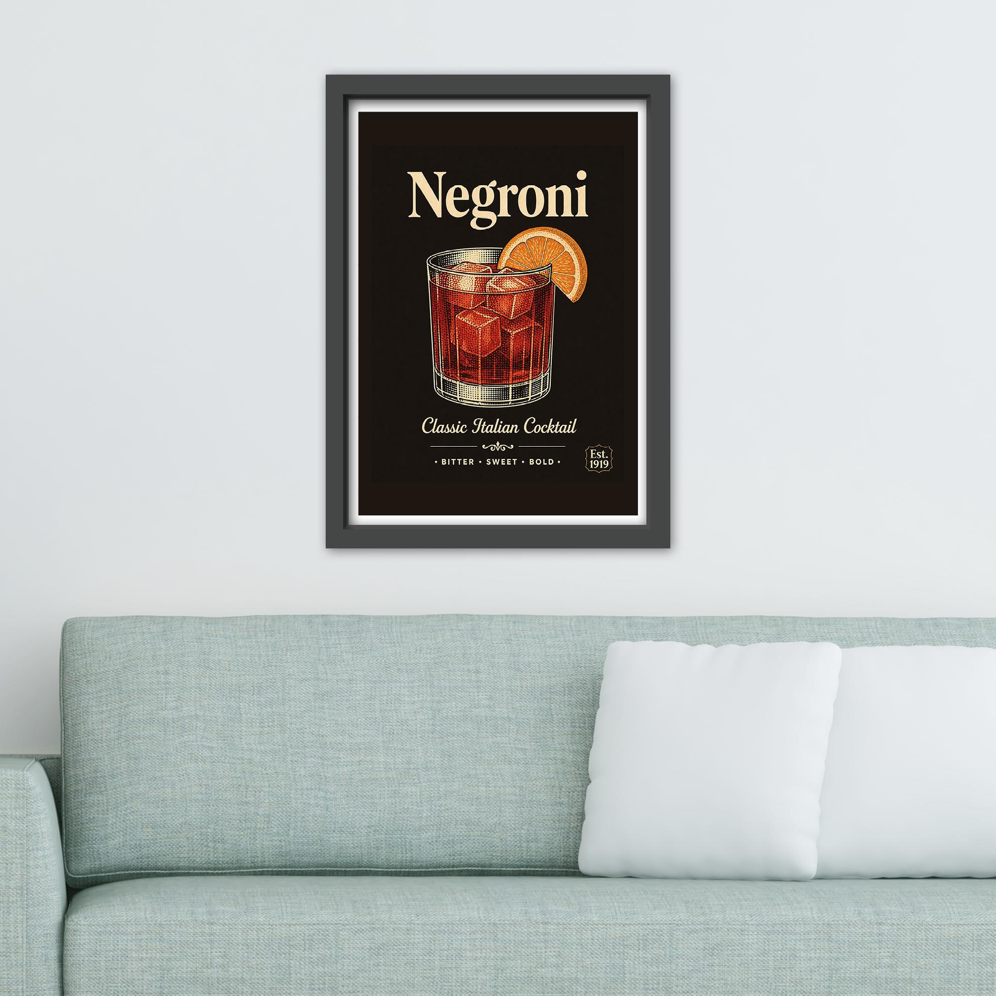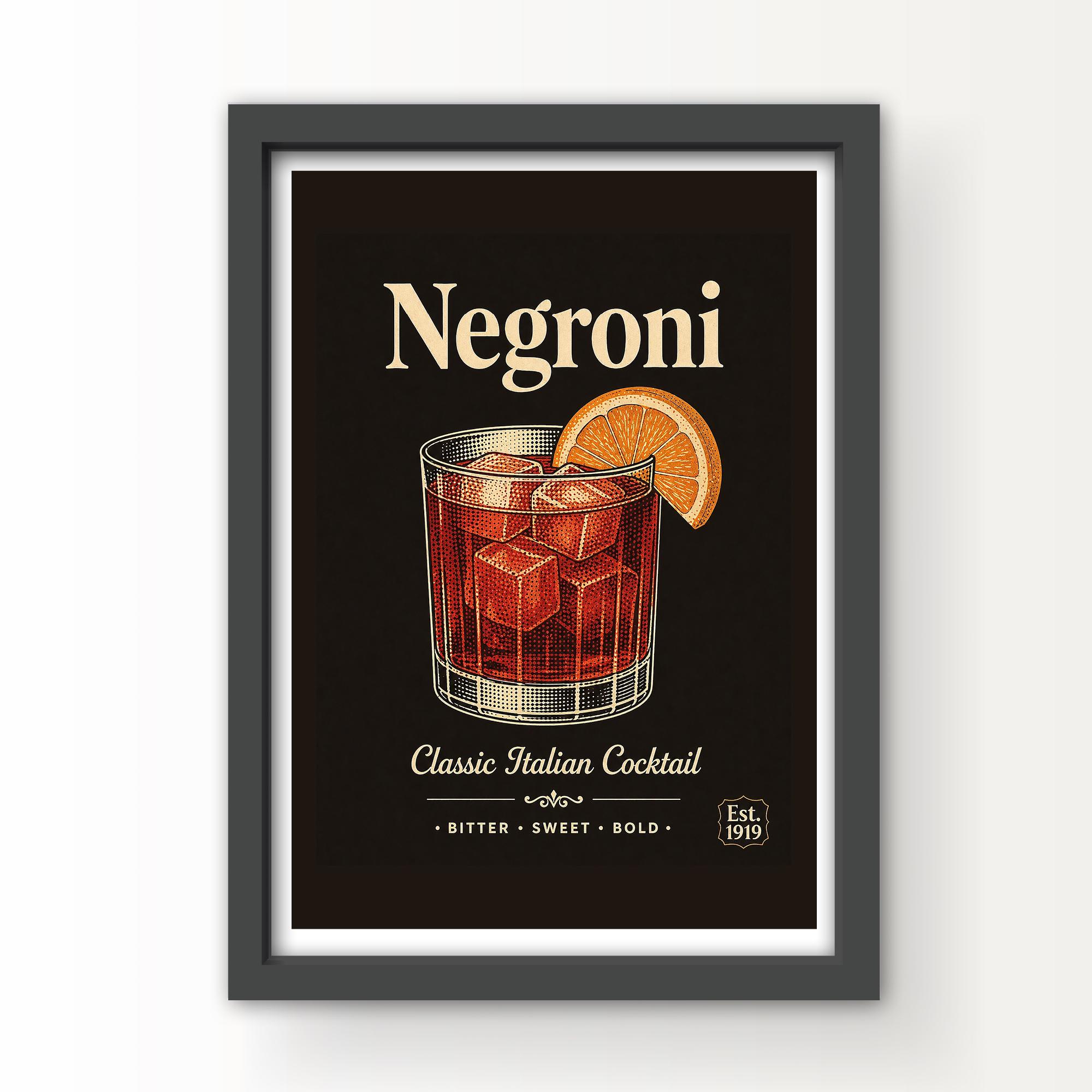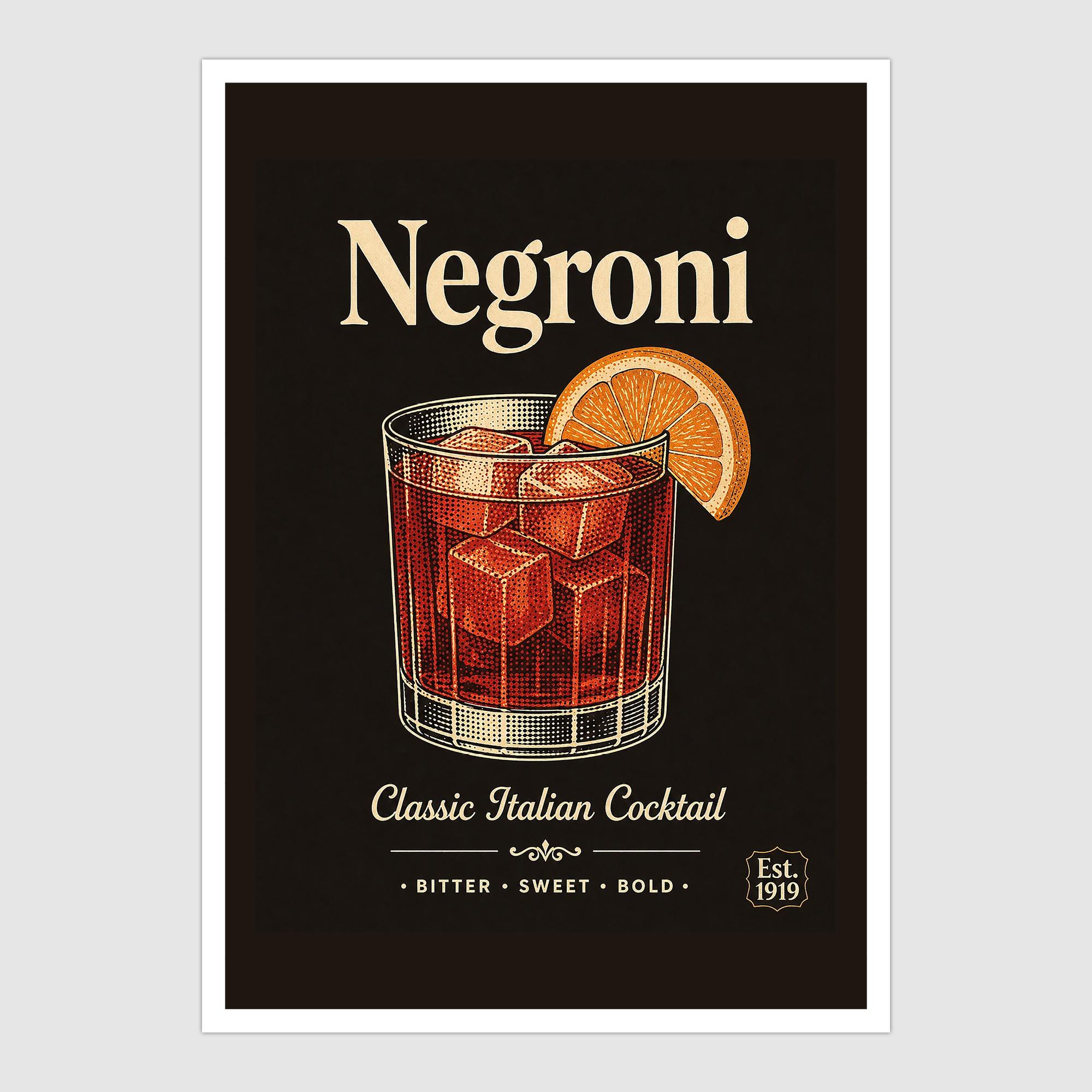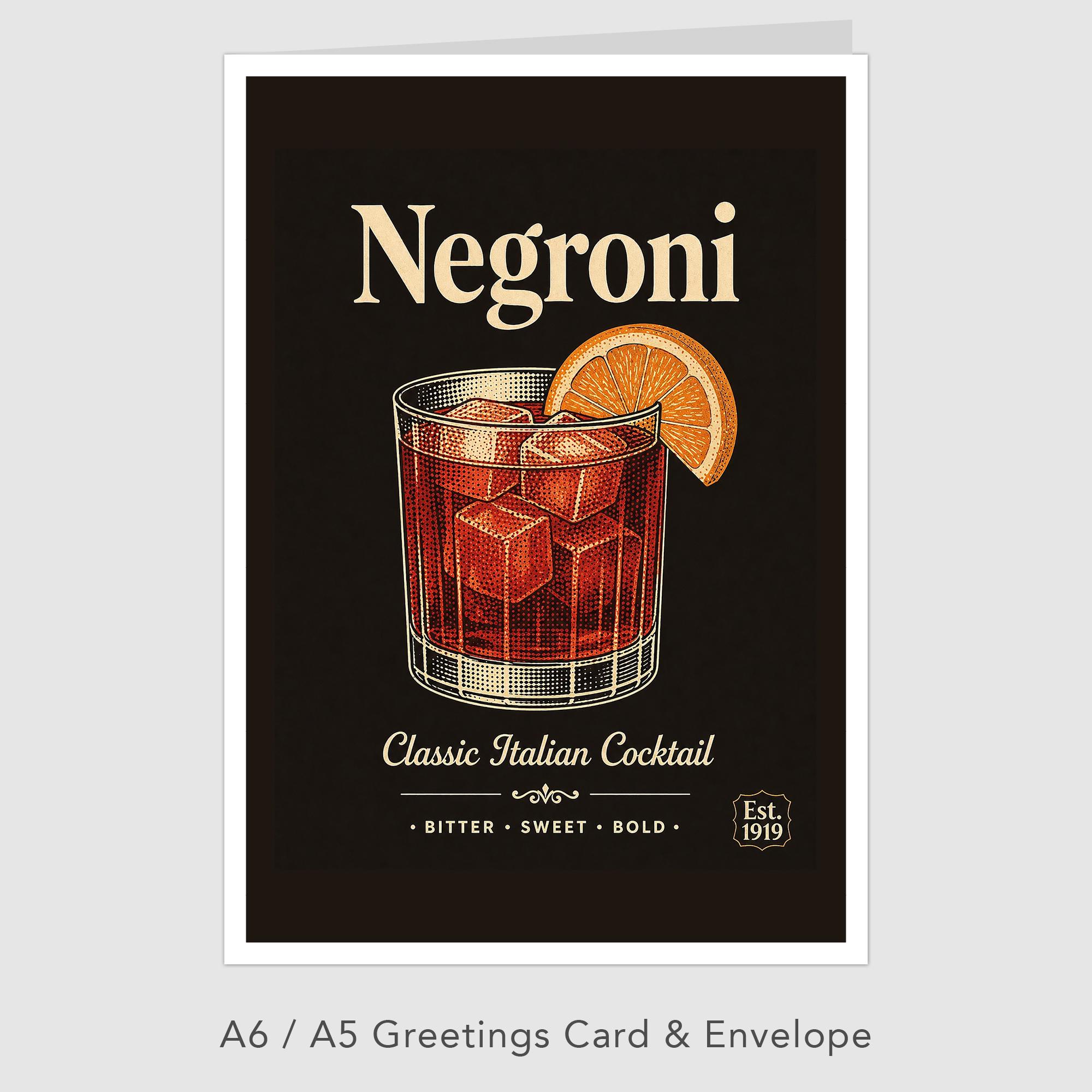 Vintage Style Negroni Cocktail Art Print and Greetings Card