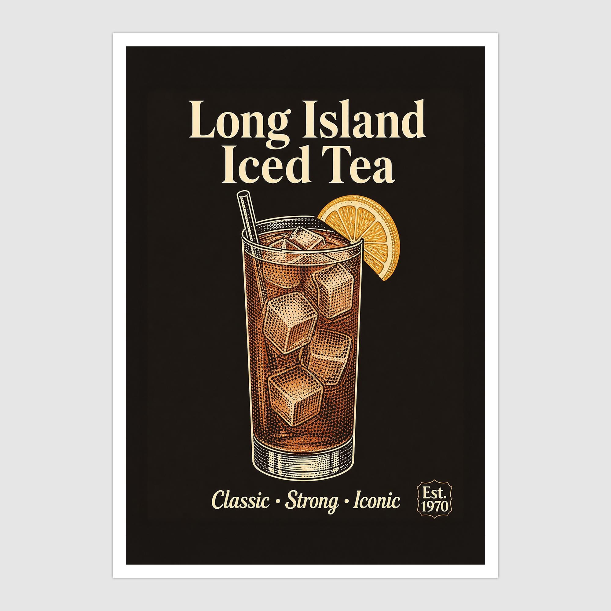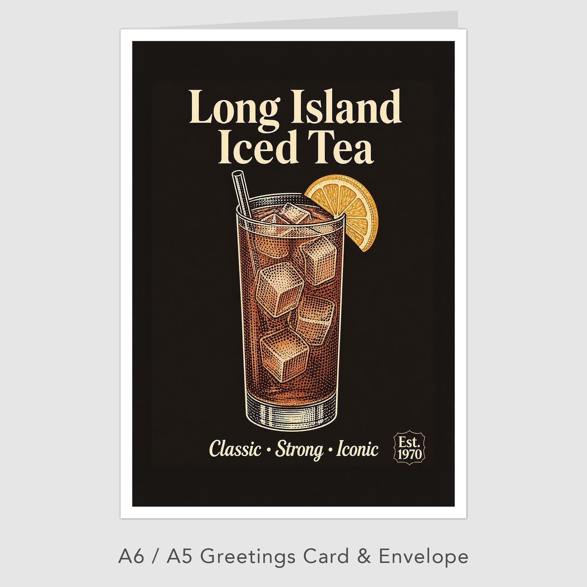 Vintage Style Long Island Iced Tea Cocktail Art Print and Greetings Card